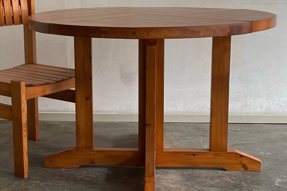Round dining table, solid pine, handcrafted design, Spanish 1970s 110 x 75 H 700€