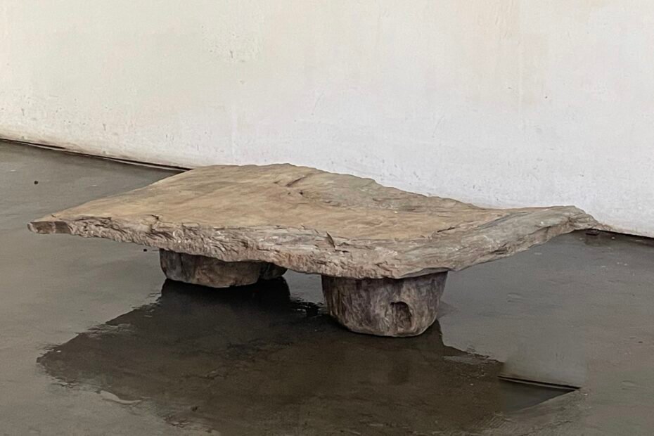 Brutalist low table, Solid wood legs, Slate stone with original partina, North of Spain, 1960s 1,10 x 70 x 30H 990€
