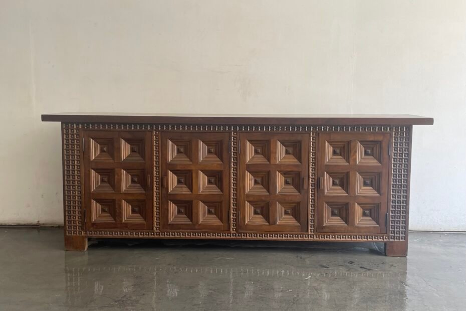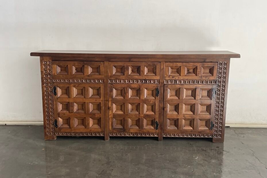 Spanish sideboard, solid wood, doors with wooden handles and handcrafted details, 1960s 220 x 45 x 74 H 3950€