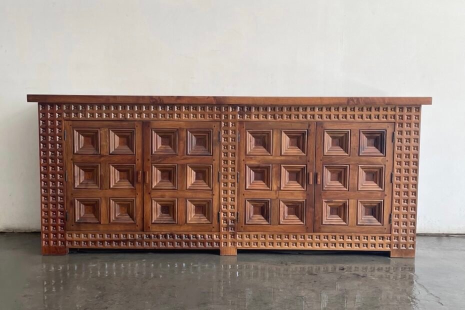 Spanish sideboard, solid wood, doors with wooden handles and handcrafted details, 1960s 210x 45 x 74 H 3950€
